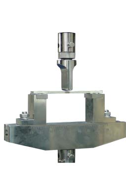 測量材料抗折或彎曲性能的一種試驗(yàn)方法。將條狀試樣平放于彎曲試驗(yàn)夾具中,形成簡支梁形式,支撐試樣的兩個(gè)下支撐點(diǎn)間的距離視試樣長度可調(diào),而試樣上方只有一個(gè)加載點(diǎn)。
