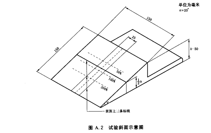 第一,粘性試驗(yàn)在試驗(yàn)斜面上應(yīng)有三條標(biāo)線(xiàn),在試驗(yàn)斜面上還應(yīng)有指示試樣不同拉伸率的刻度線(xiàn),刻度線(xiàn)距斜面頂邊的距離分別為0mm、50mm、75mm和100mm,分別對(duì)應(yīng)的試樣拉伸率為,未拉伸、拉伸50%、拉伸100%和拉伸200%。
